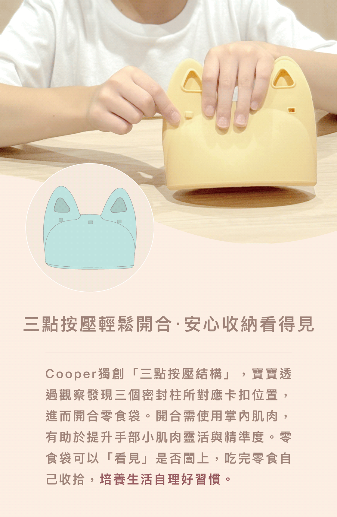 ┃三點按壓輕鬆開合安心收納看得見