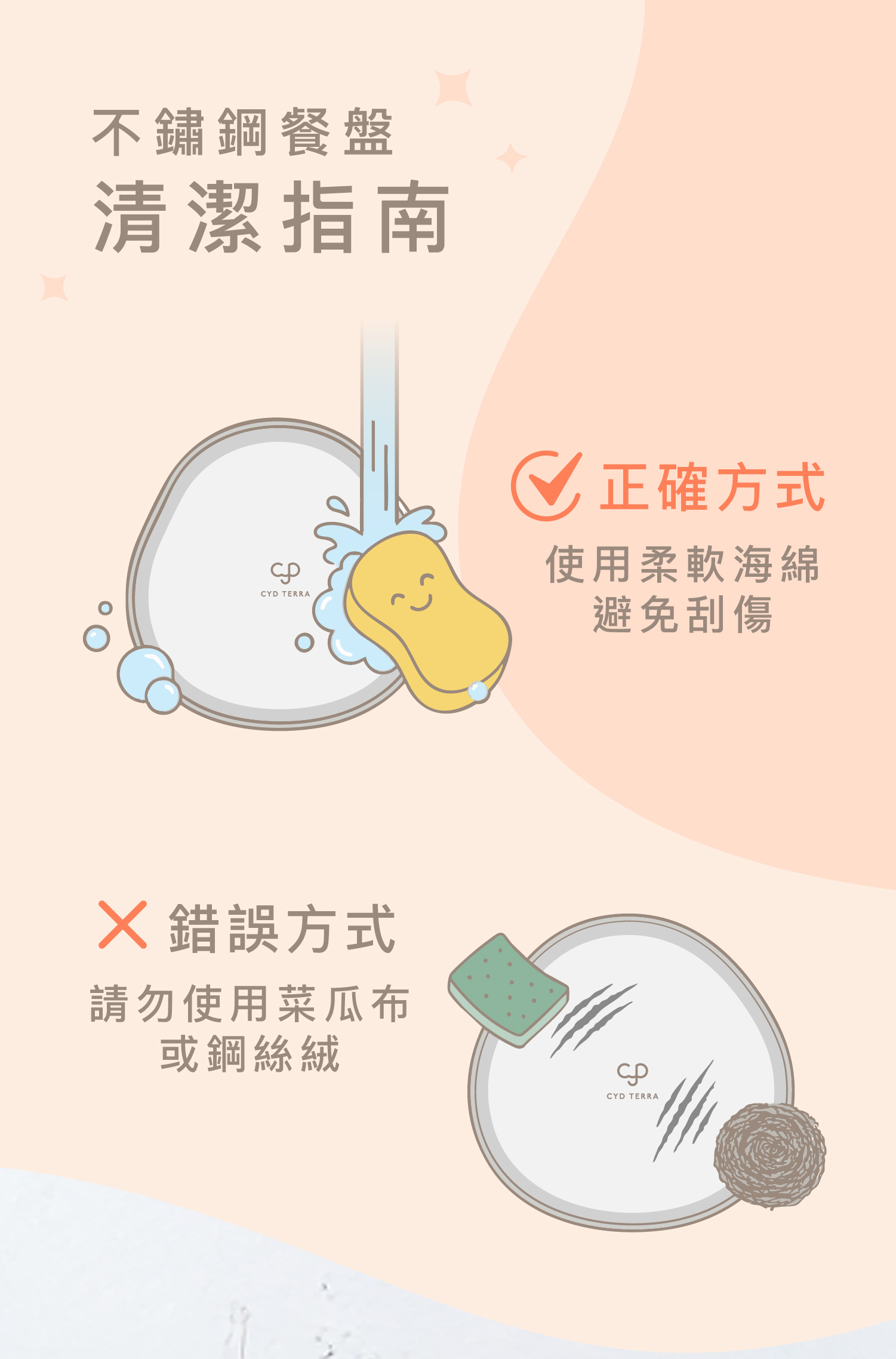 A:這種「異材質結合」兼具了耐用與安全。304 不鏽鋼提供極佳的耐用度與抗氣味性,不易卡油垢;食品級矽膠則提供了防滑、防燙且溫潤的觸感。比起純塑膠餐具,這款成長餐盤更耐高溫且不釋放有毒物質。